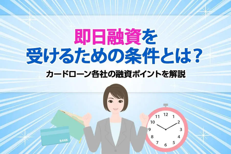 ここでは、カードローン即日融資の条件や各社の特徴、審査を通すためのポイントなどについて解説します。即日融資を検討している方は、ぜひ参考にしてみてください。