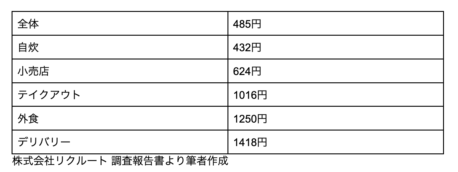 前述の株式会社リクルートの調査によると、コンビニやスーパーマーケットで買ってランチを済ませている人の割合は、20.7%です。「コンビニ弁当は高いから、いつも近くのスーパーでお弁当を買っている」という人も多いのではないでしょうか。