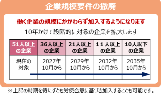 2025年の年金制度改正法案では賃金要件と企業規模要件が撤廃される見込み