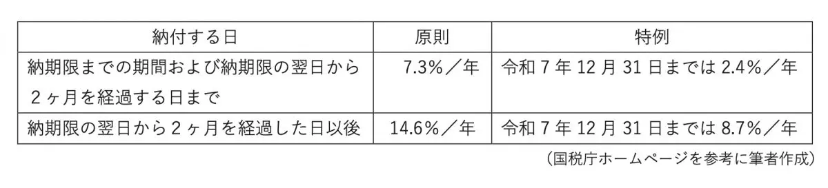 いずれのケースでも、法定納期限の翌日から納付日までの日数に応ずるかたちで、延滞税を納める必要があります。延滞税は本税のみを対象に課されるもので、加算税などは課税されません。また、本税が1万円に満たない場合、延滞税は発生しません。