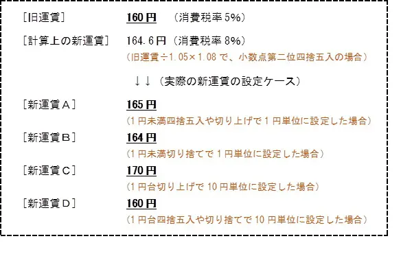 運賃は内税ですから、税別運賃の改定はないとして、消費税率の上昇だけを反映すると次のような計算になります。