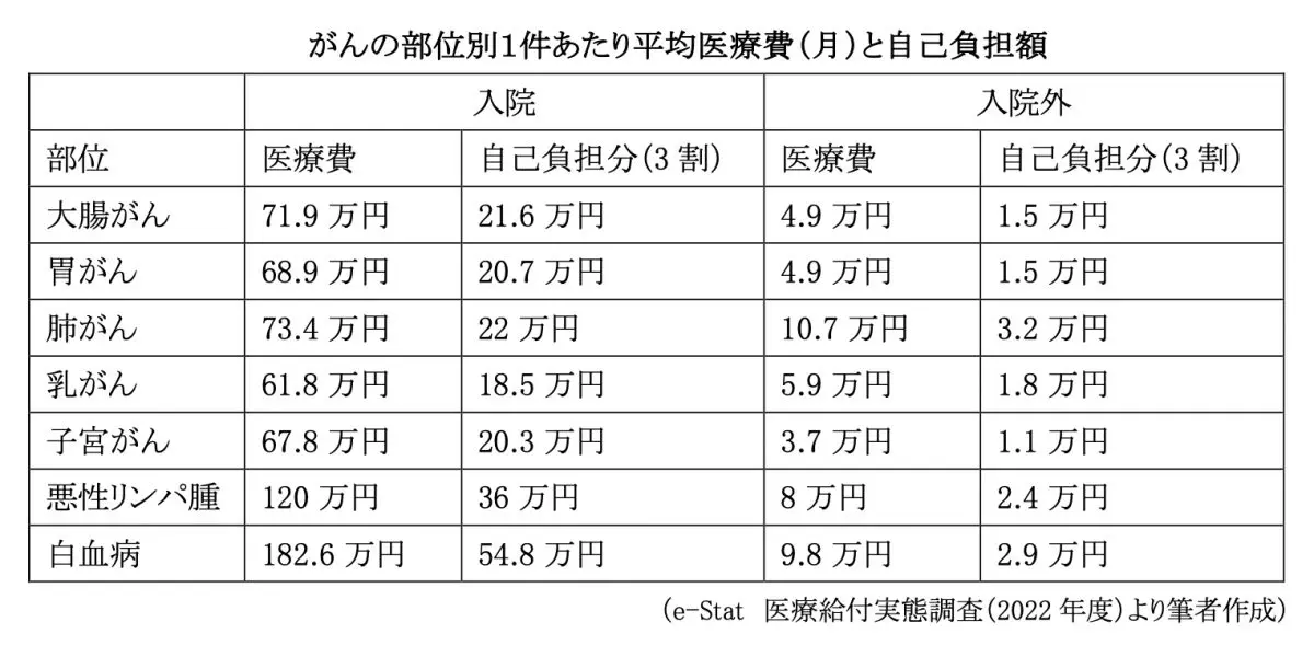 一方、白血病で入院した場合の1件あたりの平均医療費(月)は182.6万円、入院外は9.8万円で、がんの種類によって費用が異なります。