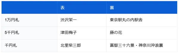 国立印刷局 新しい日本銀行券特設サイトより筆者作成