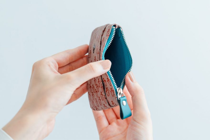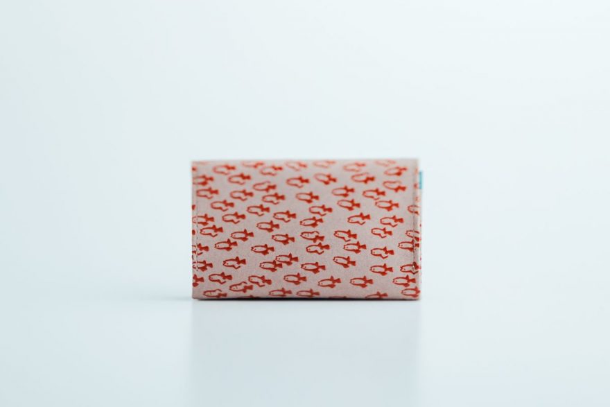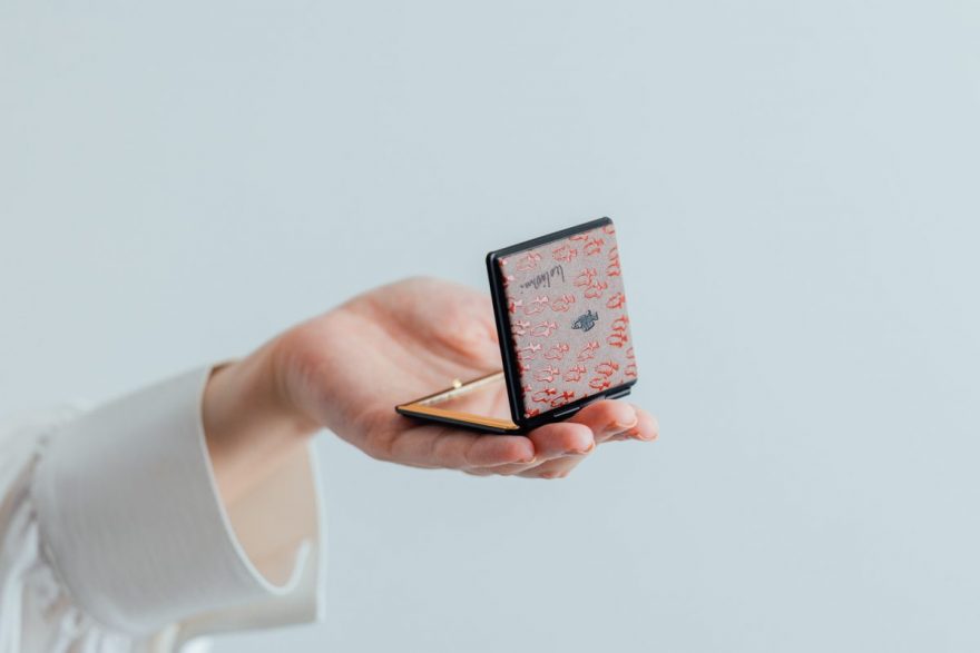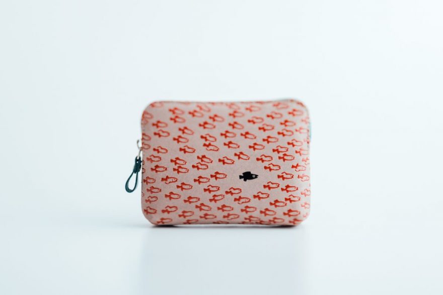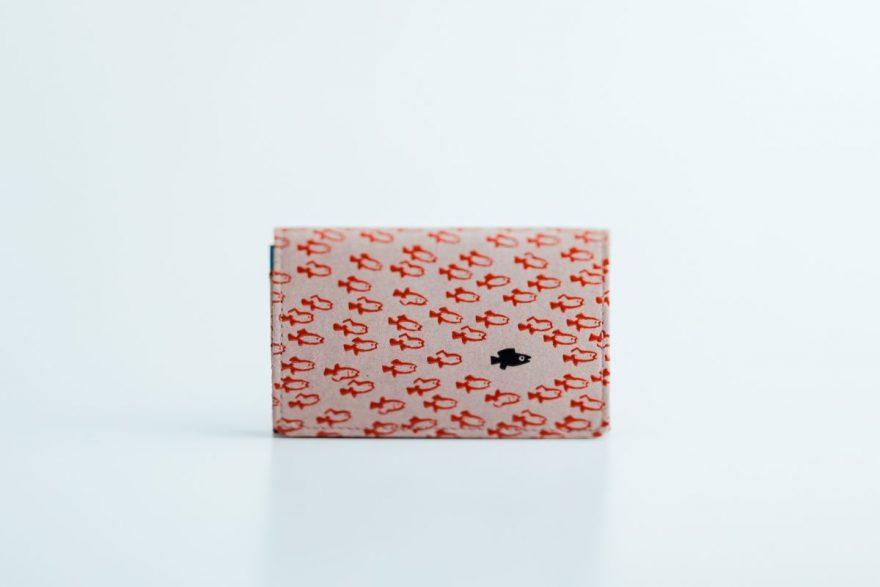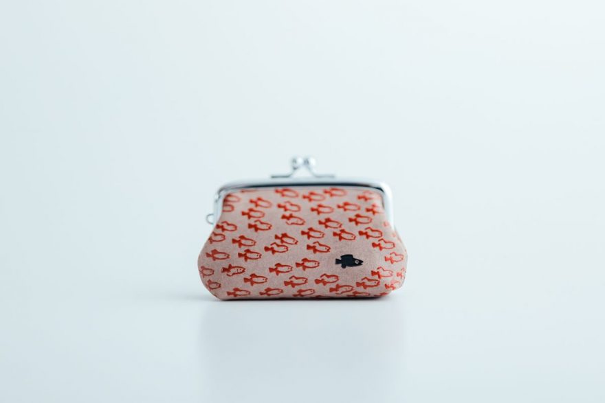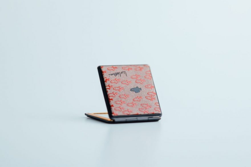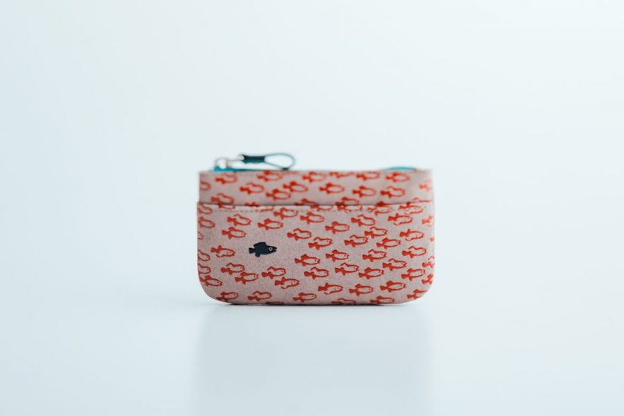 商品は、小銭入れやポーチ、名刺入れ、ミラーなど全7種類。どのアイテムも、柔らかなグレージュの鹿革をベースに、漆の光沢が小魚たちに命を吹き込んでいるかのようなデザインとなっております。漆模様の配置や密度はそれぞれ異なり、職人のこだわりが詰まった仕上がりです。
