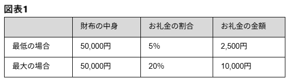 これを一時所得に当てはめると、お礼金の合計が90万円を超えた場合に申告の義務が発生する計算となります。お礼金が90万円というと、財布の中身が450万円から1800万円となるため、現実的ではないでしょう。