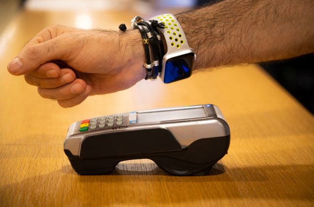 レジの端末にカードをピッとかざせば、支払いができます。おサイフケータイの機能が付いているものなら、カードがなくてもスマホをかざすだけで決済可能です。