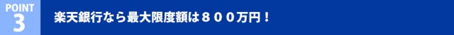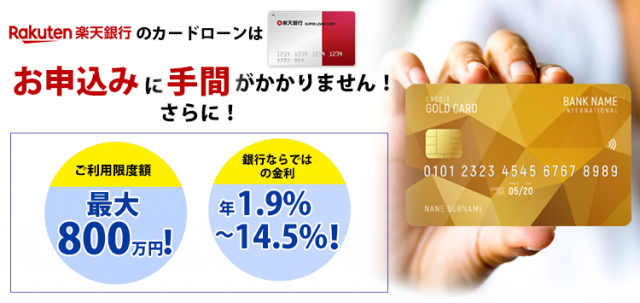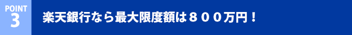 楽天銀行のカードローンなら、最大限度額800万円までご融資が可能です。