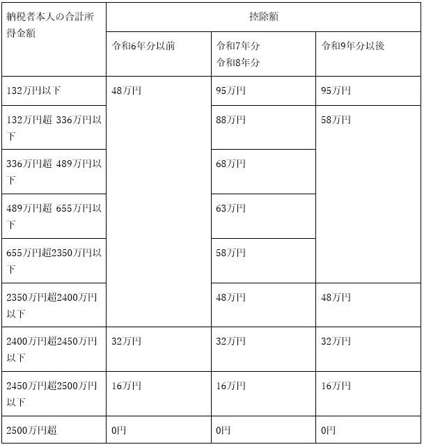 ・ 基礎控除:納税者の合計所得金額に応じて差し引かれる、基本的な控除